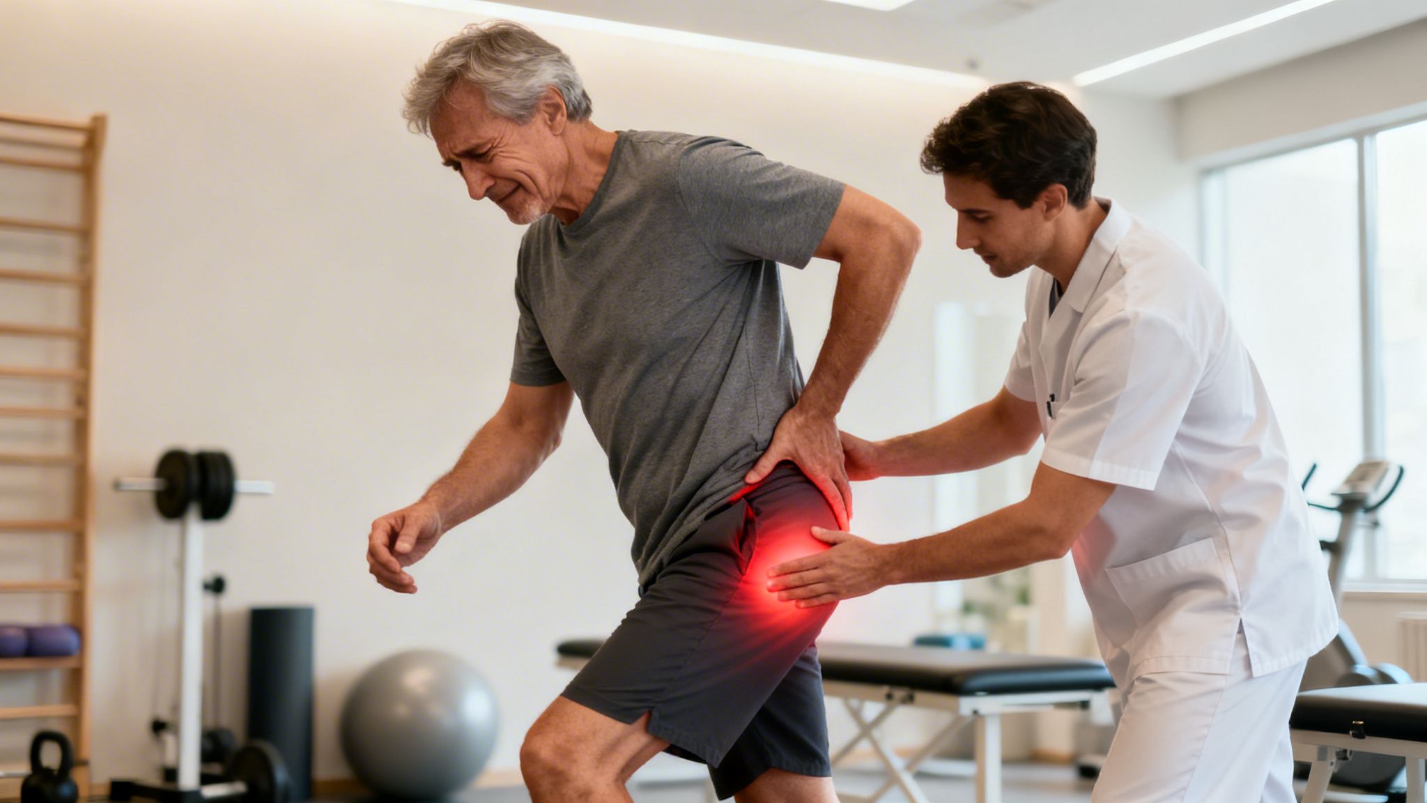 Jeg oplever tit i klinikken, at folk peger på lysken, men når vi får spurgt ind, beskriver de en smerte, der i virkeligheden sidder dybt inde i hoften. Lige præcis den skelnen er afgørende for at kunne kende forskel på en simpel seneskade og begyndende slidgigt.